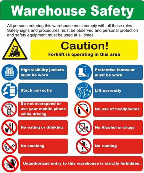 Warehouse Safety is often neglected due to its vast open spaces placing people in a false sense of security where they think it cannot happen to them. Pay close attention to this WARNING placard, it says a lot.