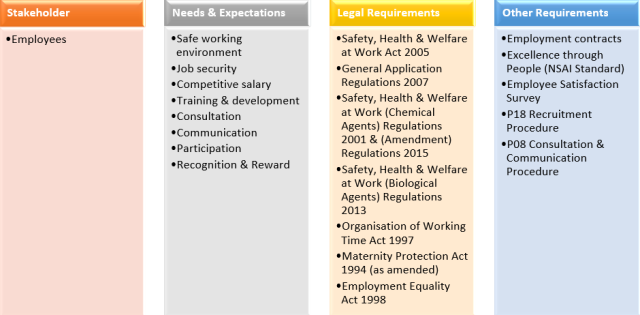 ISO 45001:2018 4.2 Understanding the needs and expectations of workers and other interested parties. I wish to credit the source: Antaris Consulting, 5 Pery Square, Limerick, Ireland The attached photo has different legislation than South Africa but the illustration is still spot on. Enjoy!