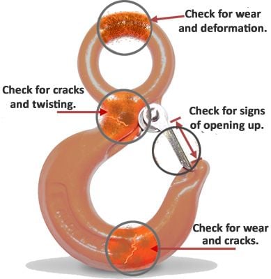 Did you know that hooks have got certain markings to aid in the inspection assessment of said hook? As a minimum, does your checklist contain the area’s as indicated below?
