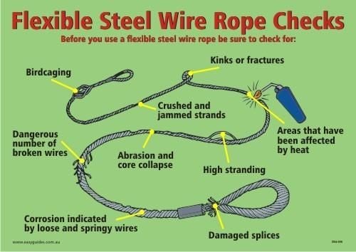 Below are points to consider when inspecting a Steel Wire Rope (SWR). Do you do this? Let us know what you do in the workplace.